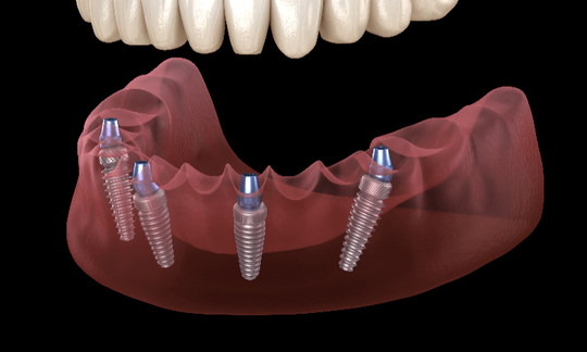 オールオン4は、最少4本のインプラントを使用して全ての歯を支える治療法です。そのため、天然の歯が残ったままではオールオン4を装着することはできません。
