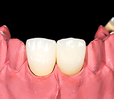 金属を使わずセラミックのみ使われた材料です。審美性に優れ、経年による変色もほとんどありません。金属アレルギーの方でも安心いただけると思います。